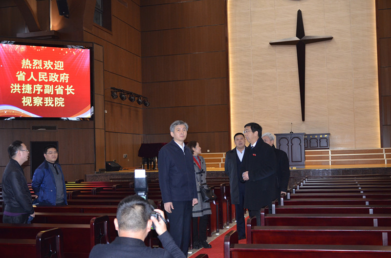 洪副省长一行首先参观了福建神学院福湾大教堂、图书馆、教学楼等教学设施,对学院坚持正确的办学方向,积极推进基督教中国化,努力发挥神学院校三个基地的作用等工作表示肯定。